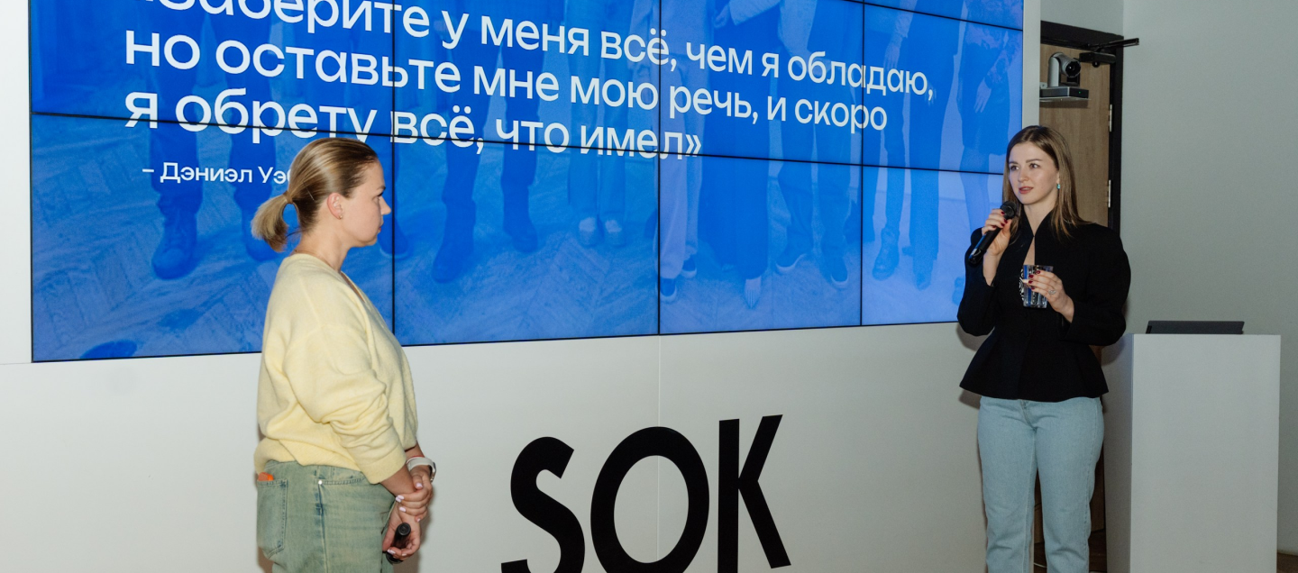 Проводим практические занятия с основателем школы управления коммуникацией «ТОП 10», тренером по технике речи и публичным выступлениям. Работаем над уверенностью через коммуникации и учимся говорить красиво и эффектно
